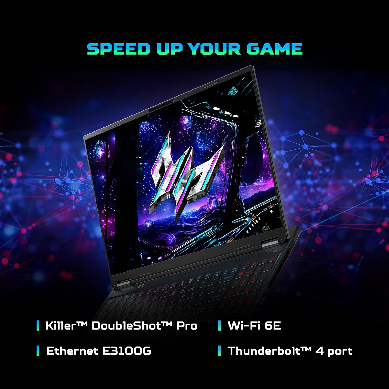 Crafted in a sleek Abyssal Black design and weighing just 2.3 kg, the Helios Neo 16S combines portability with raw power. The RGB backlit keyboard and AI-enhanced features make it the ultimate choice for competitive gaming and professional workloads.