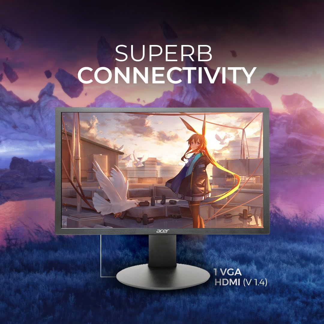 Equipped with HDMI and VGA ports, this monitor ensures easy connectivity with desktops and laptops. An HDMI cable is included for quick setup.
