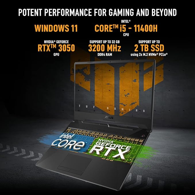 Powerful Processing: At the heart of the ASUS TUF F15 is the 11th Generation Intel Core i5-11400H processor. This high-performance CPU provides the speed and efficiency needed for seamless multitasking and demanding gaming sessions. With its six cores and twelve threads, the i5-11400H is capable of handling complex tasks, ensuring that you can run your favorite games and applications without any lag.