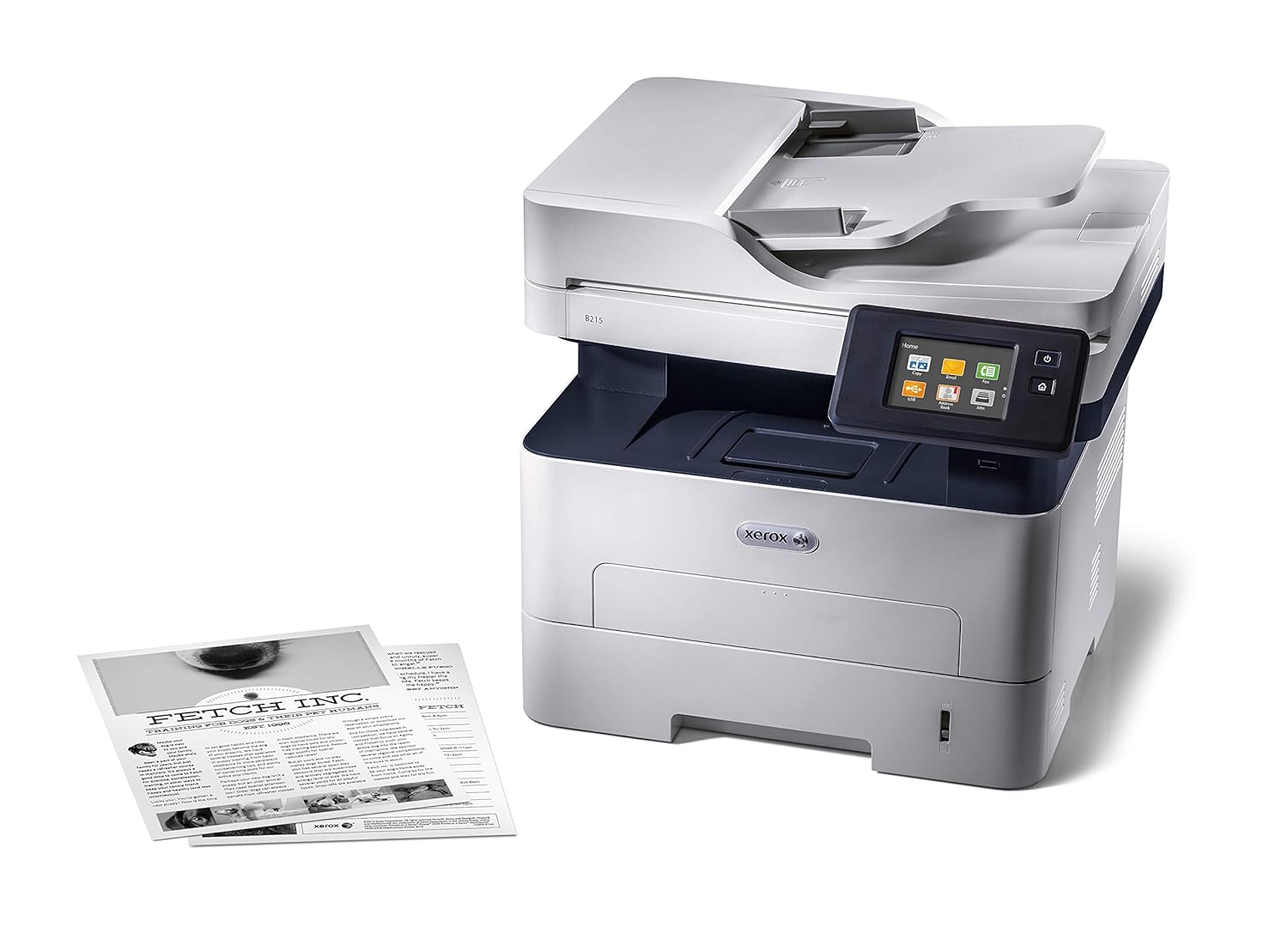 The Xerox B215 is a compact black-and-white laser printer that combines print, scan, copy, and fax in one efficient device—perfect for home offices and small teams. With fast printing speeds up to 31 ppm, automatic duplex printing, and a 3.5" color touchscreen, it offers convenience and performance in a small footprint.