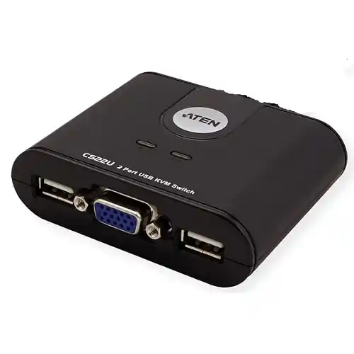 The compact CS22U allows quick switching between 2 VGA-interfaced PCs via one KVM console and flexible media sharing via the console USB ports, which helps to expand desktop workspace while keeping it tidy and organized for improved productivity.