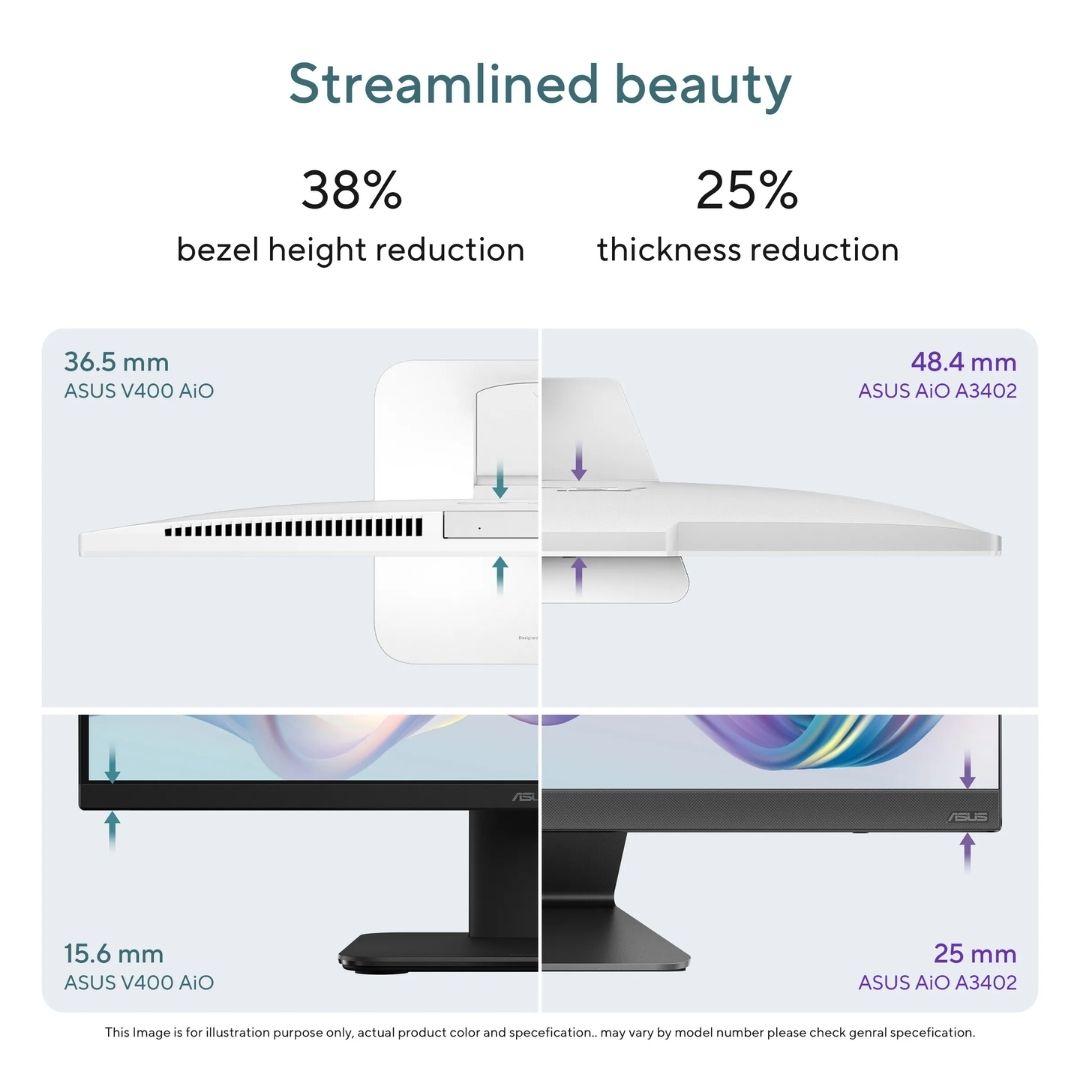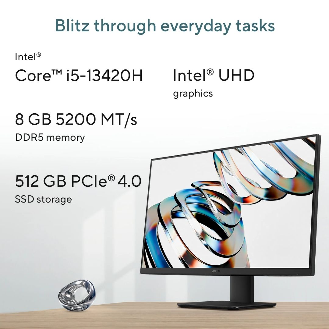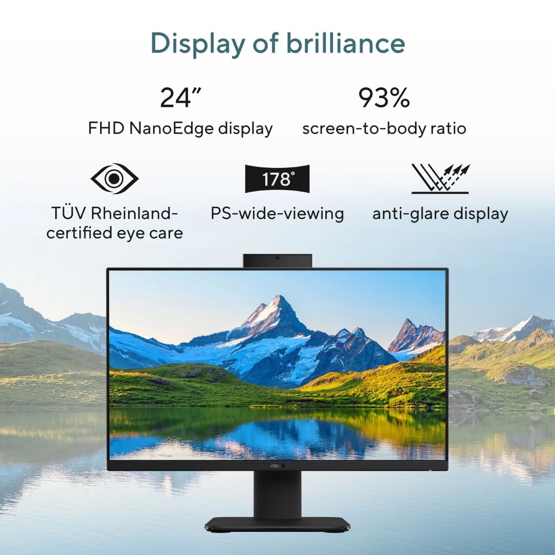 The ASUS V440VA-KBPC066WS All-in-One PC delivers performance, aesthetics, and efficiency in a slim, minimalist design. Powered by the 13th Gen Intel Core i5-13420H processor, it ensures smooth multitasking with 8GB DDR5 memory and 512GB PCIe 4.0 SSD storage. The 23.8-inch Full HD 100Hz display provides vivid visuals with a 93% screen-to-body ratio, while Dolby Atmos audio and AI noise cancellation enhance every interaction — from work calls to entertainment.