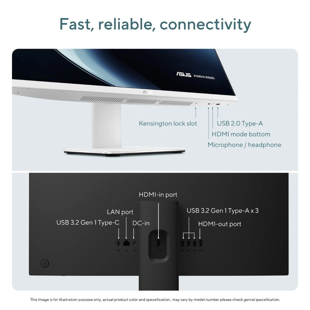 Connectivity is next-gen with Wi-Fi 6E, Bluetooth 5.4, HDMI In & Out, and Gigabit LAN. The 1080p IR webcam with privacy shutter adds convenience and security for video conferencing. Preloaded with Windows 11 Home and Office Home 2024 + M365 Basic, this AIO is perfect for modern workspaces seeking both power and elegance.