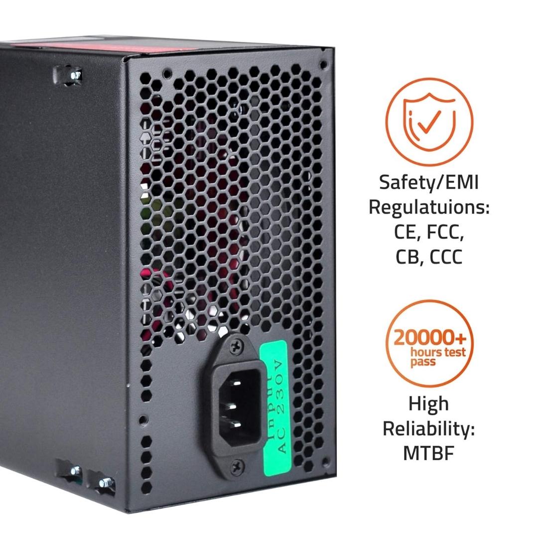 Its 80+ efficiency rating helps reduce heat and wasted energy, improving system performance and longevity. Finished in a sleek black exterior, this power supply blends seamlessly into any PC build, offering reliability, value, and durability all in one package.