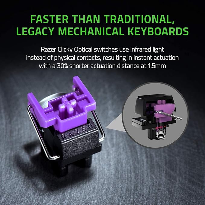The Razer Huntsman Mini is a high‐performance, compact 60% gaming keyboard designed for gamers who demand responsiveness, precision, and a minimal footprint. With the ultra-fast Clicky Purple Optical Switches, each keystroke actuates with lightning-fast response, giving you the edge in competitive play. The compact layout frees up your desk space and allows for broader mouse movement — perfect for FPS and eSports style setups.