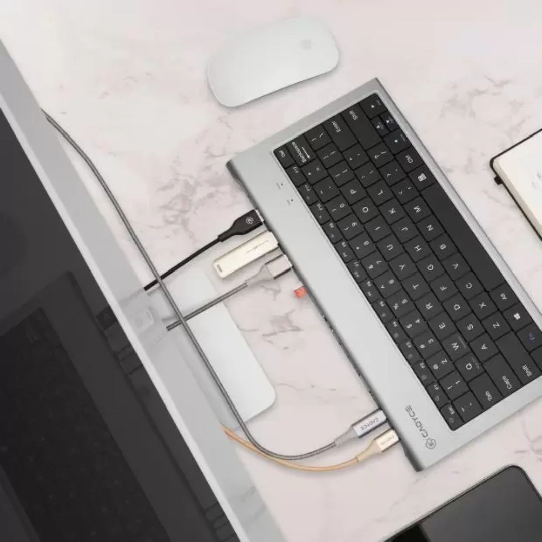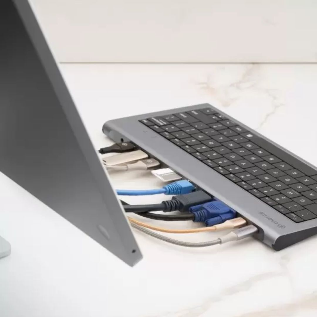 Cadyce CA-KBDS USB-C™ Keyboard & Docking Station combines productivity and connectivity in one sleek device. Designed for modern USB-C™ laptops, it provides HDMI 4K, VGA, USB 3.0, dual USB-C™ PD ports, Gigabit Ethernet, and SD / Micro SD card slots — all while functioning as a full keyboard.