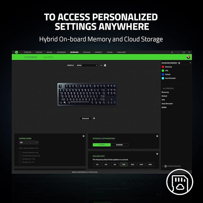 By opting for the tenkeyless layout, you gain more space for mouse movement and a cleaner desk setup, while still maintaining high performance. The keyboard’s build features doubleshot PBT keycaps, an aluminium top plate, and a detachable USB-C cable for ease of transport and durability. With full support for Razer Chroma RGB lighting, you can personalize your setup and sync it across your gaming gear. Whether you’re in competitive tournaments or just want a high-quality keyboard for play and productivity, this model brings pro-grade performance in a sleek TKL design.