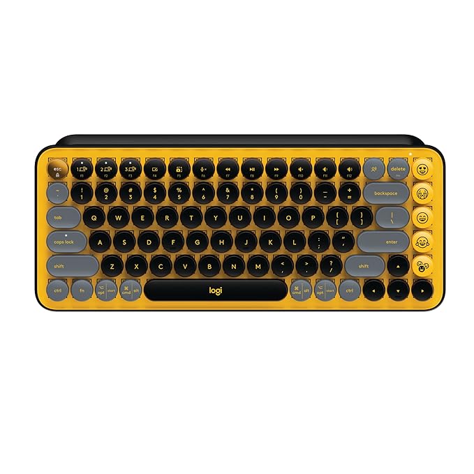 Make a bold statement with the Logitech Pop Keys Blast, a mechanical wireless keyboard that combines retro charm with modern functionality. The vibrant black, grey, and arcade yellow color scheme is designed to stand out, while its compact and durable design makes it perfect for any workspace or on-the-go setup.