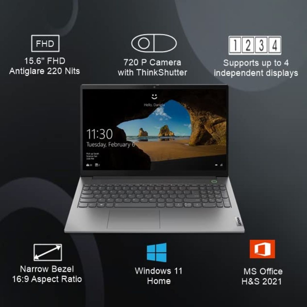 The Lenovo ThinkBook 15 is built for professionals and students who value performance and portability. Powered by the AMD Ryzen 3 5300U processor, this laptop delivers smooth multitasking with its 8GB DDR4 RAM and 256GB SSD. The 15.6-inch Full HD anti-glare display ensures vibrant visuals while reducing eye strain. With Windows 11 Home and Microsoft Office 2021 preloaded, it’s productivity-ready right out of the box.