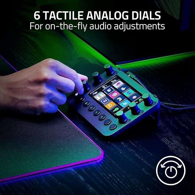 The controller integrates with your streaming setup, allowing you to map different functions like scenes, effects, and audio controls to the haptic keys and tactile dials. You can customize it to suit your specific streaming workflow.