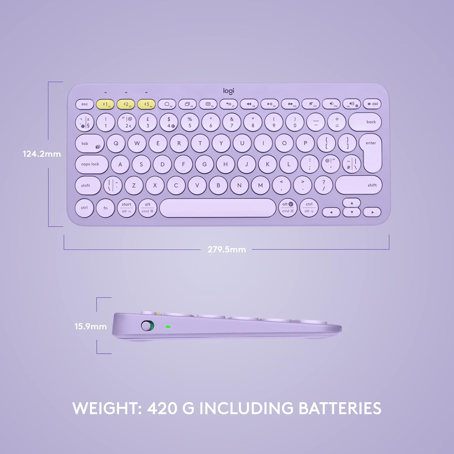 INTUITIVE LAPTOP-LIKE TYPINGSculpted round keys match the shape of your fingertips for a comfy, familiar typing experience. |