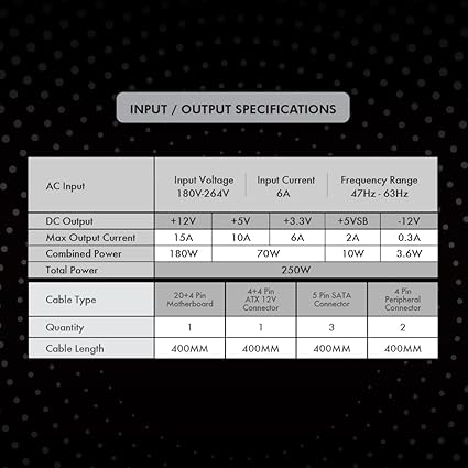 | Certifications | Follows general safety and performance standards (not 80 Plus Certified) |