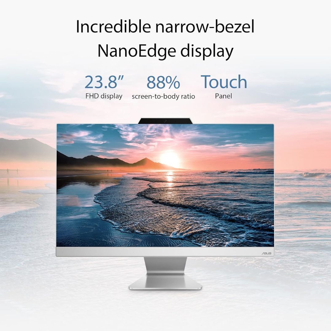 The space-saving ASUS A3402 is remarkably slim and light, and its NanoEdge display features a thin bezel for edge-to-edge viewing and an impressive up to 88% screen-to-body ratio. With a 23.8" FHD (1920 x 1080) display, everything you do is rendered in vivid detail with amazing color and contrast for work or play.