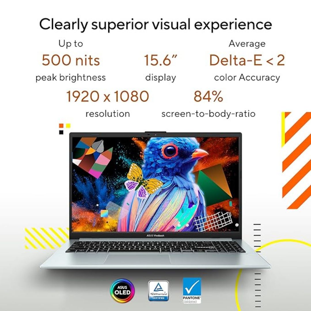 Its 15.6-inch Full HD OLED display offers rich visuals with deep blacks and vivid colors, making it perfect for entertainment and creative work. With a fast 512GB SSD, you get quick boot times, smooth application launches, and ample space for documents, videos, and projects.