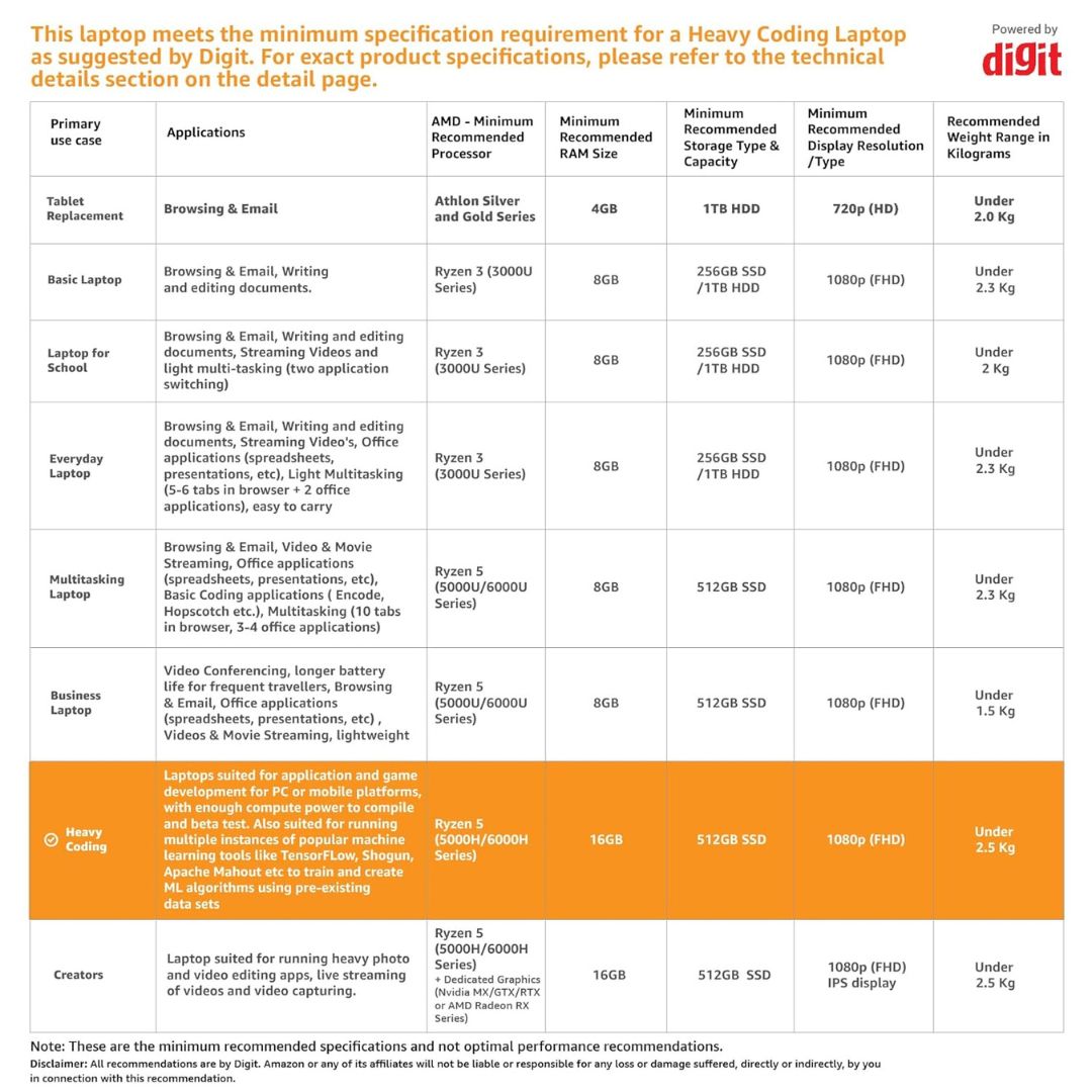 The integrated AMD Radeon Graphics ensures smooth visuals for everyday tasks and light gaming. Weighing just ~1.6 kg, it’s lightweight and portable, making it a reliable partner for students and on-the-go professionals. Preloaded with Windows 11 Home, Green it’s future-ready with the latest features and security updates.