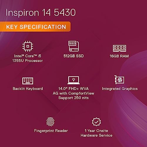 The Dell Inspiron 5430 is a high-performance laptop designed for those who need power and portability. Featuring the 13th Gen Intel Core i5-1335U processor, this laptop delivers fast, responsive performance perfect for multitasking, productivity, and entertainment. With 16GB of RAM and a 512GB SSD, it ensures smooth performance and ample storage for your files and applications, making it ideal for professionals and students alike.