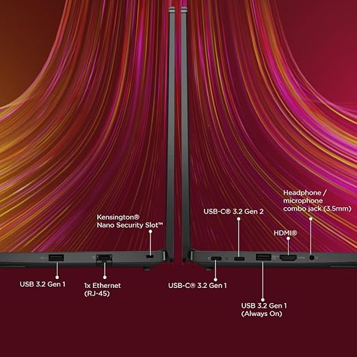 Weighing at just 1.41 kg (3.11 lbs), this ThinkPad is built to amplify business computing for the hybrid workforce. It is powered by AMD Ryzen 5 processors and AMD Radeon Graphics to tackle heavy workloads- from trading to video editing and beyond. The multiple ports such as Wi-Fi 6 facilitate stable network connectivity for on-the-go users whereas the USB-C 3.2 Gen 1 port support data transfers, power delivery and compatibility with a wide range of devices and peripherals.