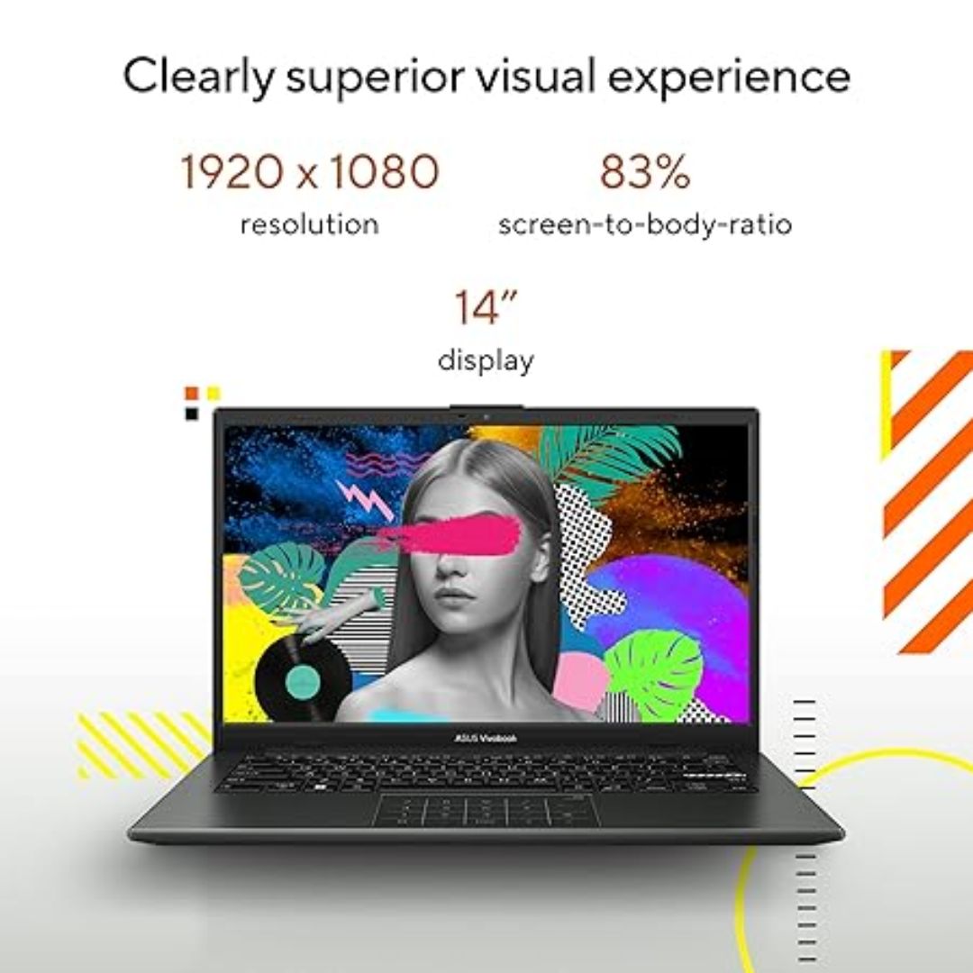 Vivobook Go 14 has beautifully clear visuals with its NanoEdge slim-bezel display that provides more screen space for multitasking and immersive viewing.