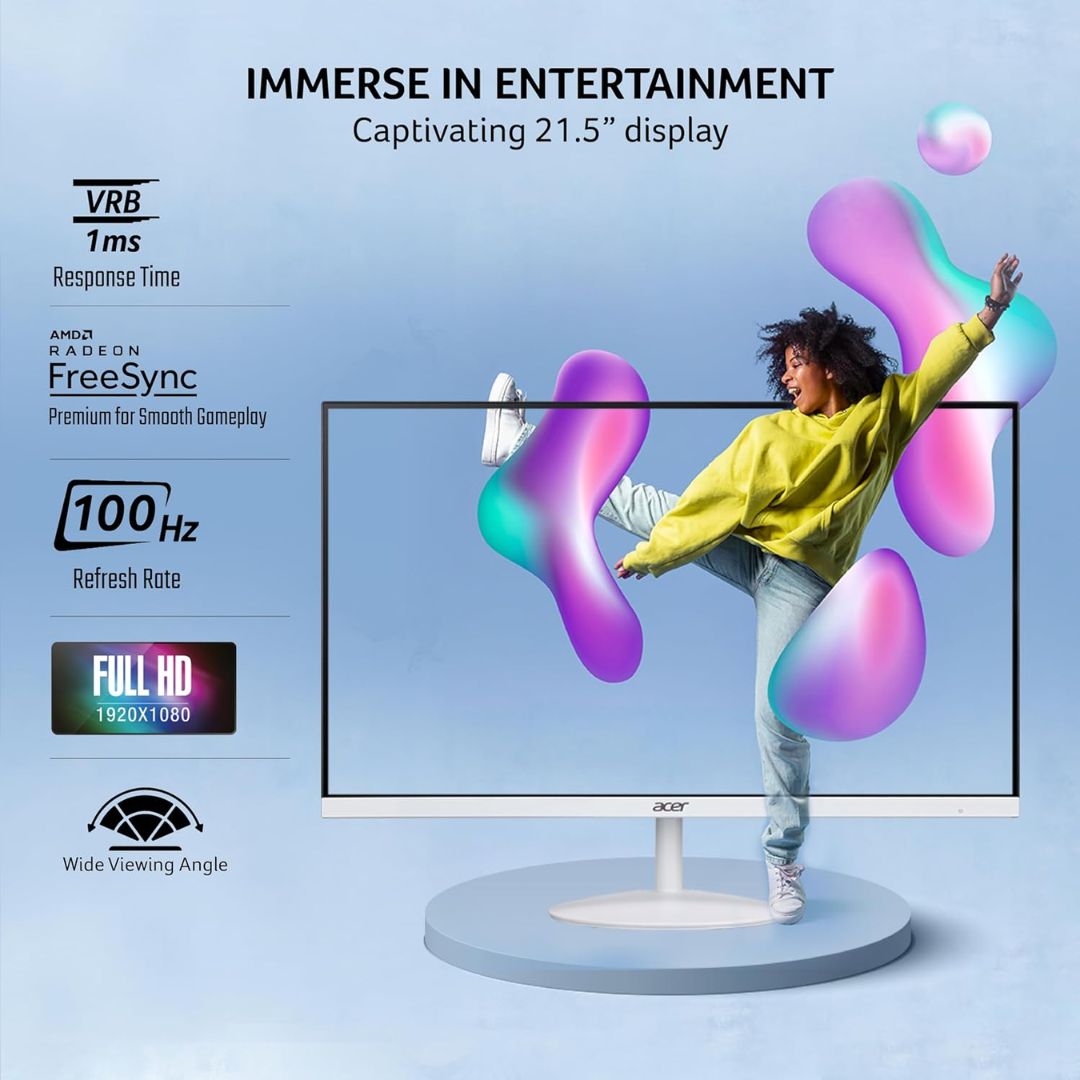 The Acer (SA242Y E, UM.QS2SI.E01) 23.8″ Full HD IPS Monitor combines performance, design, and comfort. Its IPS panel provides vibrant colors and wide viewing angles, while the 100Hz refresh rate and 1ms VRB response time ensure smooth visuals during gaming or video playback.