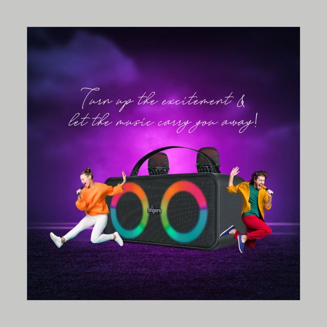 Bring the party home with the FINGERS 2Mic-Karaoke Portable Speaker, engineered for high-energy karaoke and music sessions. With a powerful 24W sound output and intense bass, this speaker delivers rich, room-filling audio that keeps the excitement alive.