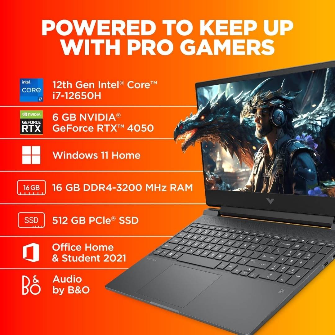 The HP Victus 15-fa1134TX is a powerful gaming laptop designed for gamers who demand high performance, fluid gameplay, and premium build quality. Powered by the 12th Gen Intel Core i7-12650H, this machine delivers outstanding speed and efficiency for gaming, streaming, editing, and multitasking.
