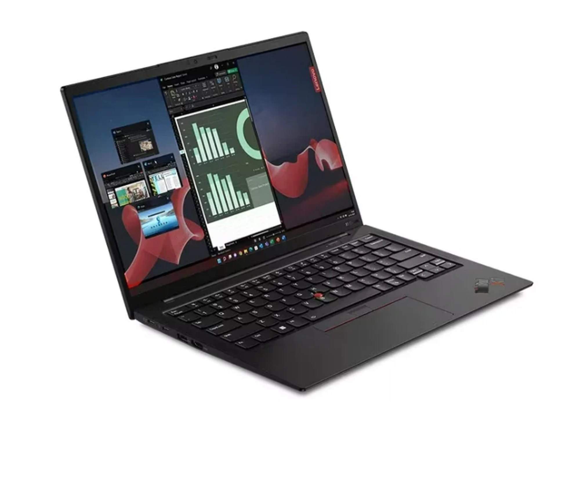 Premium thin and light laptop powered by a 13th Gen Intel Core i7 processor, featuring a 14" WUXGA IPS display with 400 nits brightness and 100% sRGB color coverage. Equipped with 16GB RAM and a 1TB SSD, it's designed for exceptional performance and efficiency with integrated Intel Iris Xe graphics. The laptop is built with durable carbon fiber and aluminum materials, ensuring reliability under rugged conditions. It includes multiple ports (USB, Thunderbolt, HDMI), a fingerprint reader for security, and comes preloaded with Windows 11 Pro. Weighing only 1.12 kg, it also includes 3-year Premier Support for peace of mind.