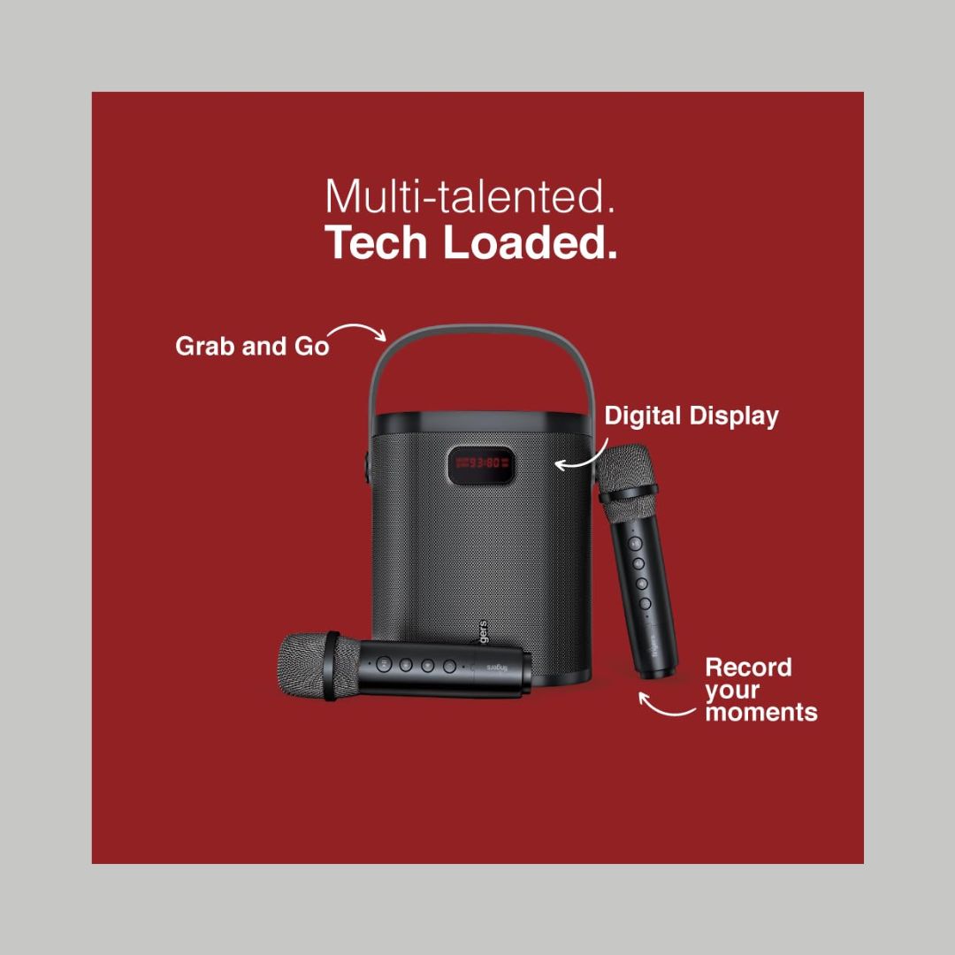 The speaker comes with two wireless microphones, making it ideal for karaoke sessions, group performances, or public speaking. Enjoy up to 6.5 hours of continuous playback, allowing the fun to last without frequent recharging.