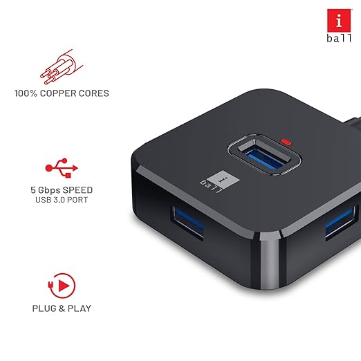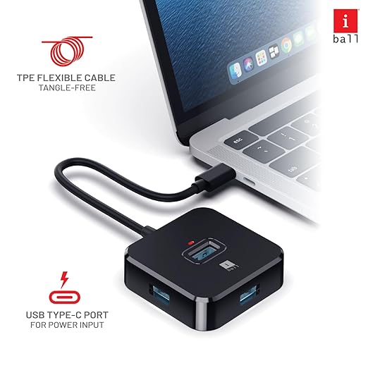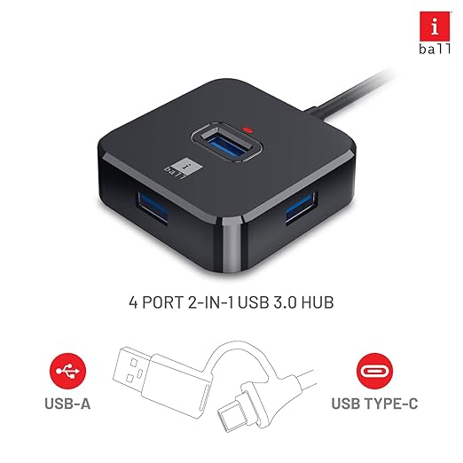 The iBall Piano 530 is a stylish, high-speed 4-port USB hub featuring both USB 2.0 and USB 3.0 interfaces. This hub has a versatile 2-in-1 adapter cable with USB-A female and Type-C male inputs, allowing compatibility with a wide range of devices, including laptops, PCs, Android devices, MacBooks, Chromebooks, and Surface Pro. It supports data transfer speeds up to 5 Gbps and includes a Type-C input port for an optional external 5V power supply. The hub has a 1-meter TPE flexible cable that prevents tangling, and the piano finish adds a sleek touch. It’s driver-free, plug-and-play, and designed for ease of use and portability.