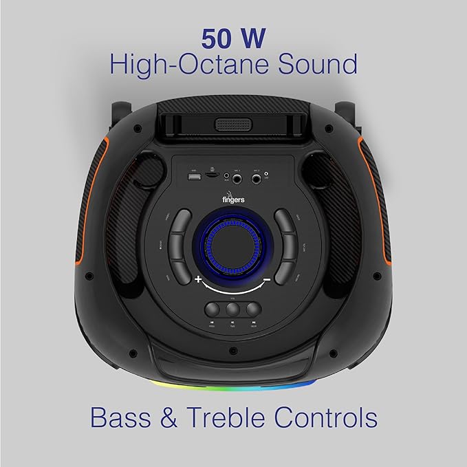 Bring the party wherever you go with the FINGERS RollingParties-51 Bluetooth Trolley Speaker. Powered by a 50W high-output audio system, it delivers deep bass and crystal-clear sound that fills any indoor or outdoor space effortlessly.