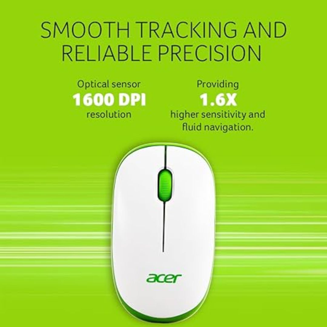 The Acer Wireless Mouse combines style, comfort, and precision in a lightweight and ergonomic design. Equipped with a 1600 DPI optical sensor, it ensures smooth and accurate tracking, perfect for everyday productivity, browsing, and multimedia use.