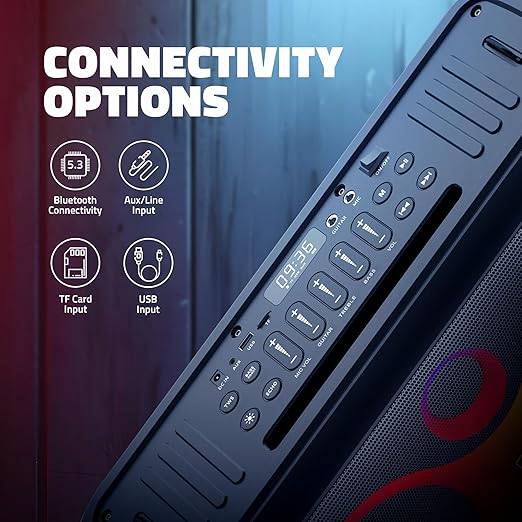 Bring concerts home with the Artis SoundPro 500 Portable Bluetooth Party Speaker. Boasting a 100W RMS output, it supports TWS pairing, USB | TF Card | AUX | Guitar Input, and includes a wireless mic and remote control — ideal for parties, events, live performances, and karaoke sessions.