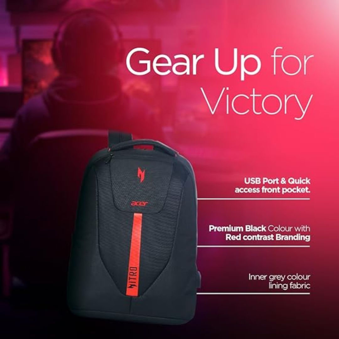 The Acer Nitro Airmesh Padded Backpack (Black & Red) is built for gamers and professionals who need a stylish, reliable, and comfortable backpack. Designed with padded laptop protection and multiple compartments, it provides ample space for your laptop, headset, mouse, books, and other essentials.