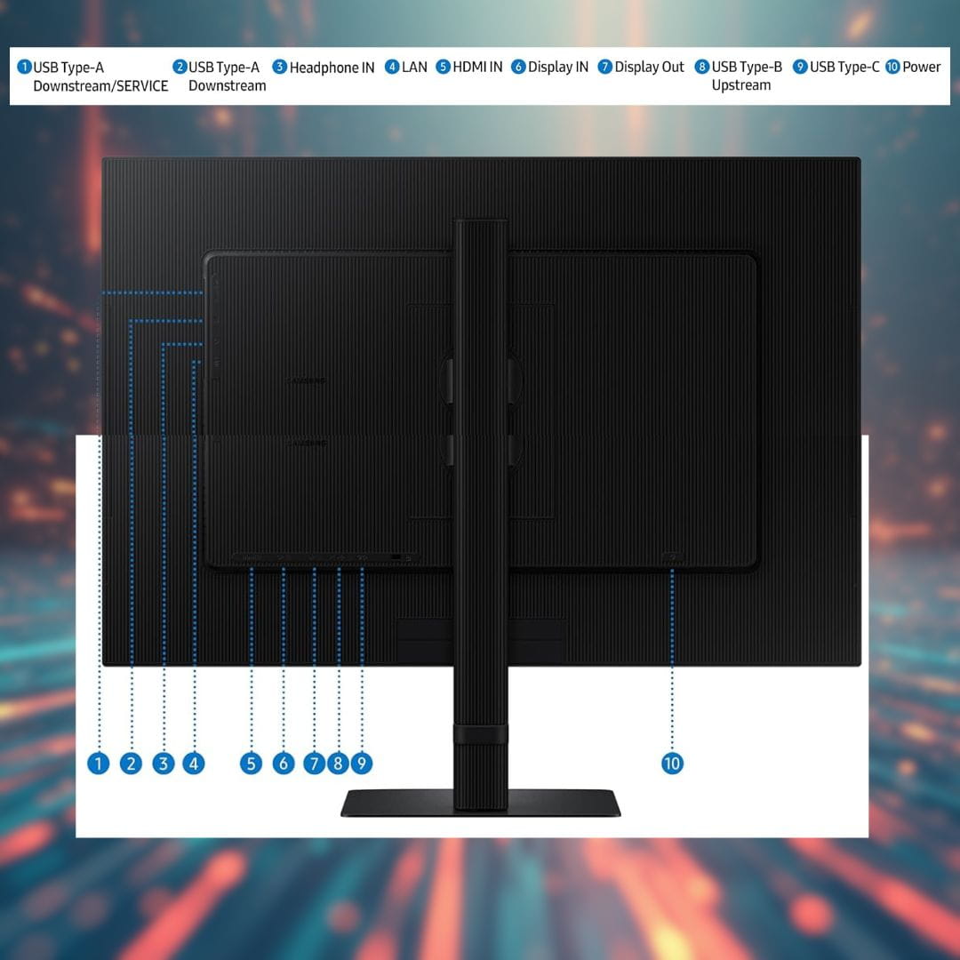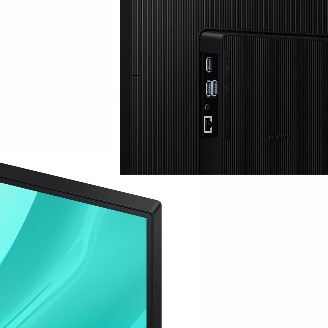 The monitor offers advanced productivity features such as USB-C with 90W power delivery, LAN port, built-in KVM switch, and daisy chain support, enabling clean and efficient workstation setups. PIP and PBP modes allow seamless multitasking across multiple input sources. The Easy Setup Stand with height, tilt, and pivot adjustment ensures ergonomic comfort, all wrapped in a sleek black finish.