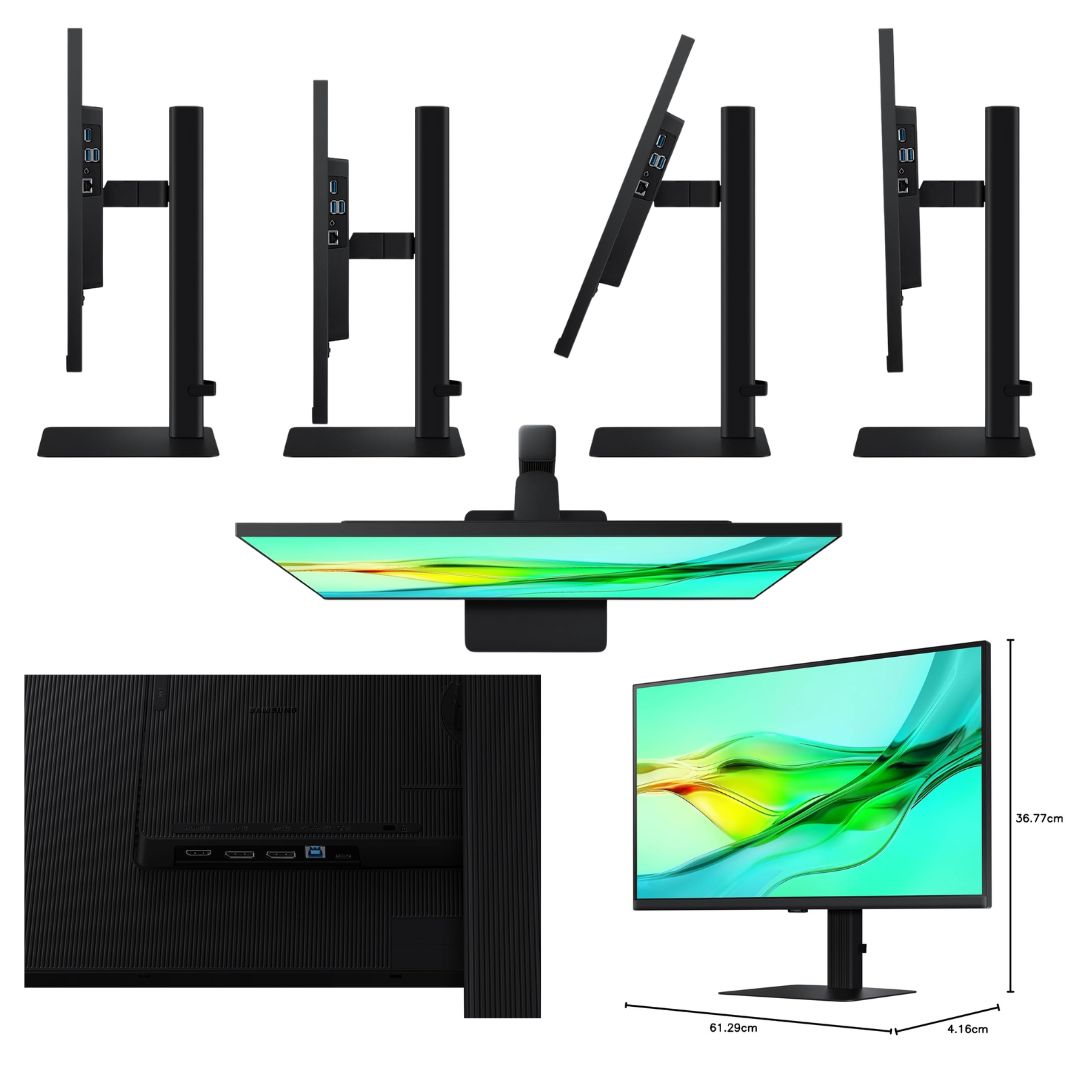 The Samsung ViewFinity S6, LS27D604UAWXXL, 27-inch QHD Monitor is designed for professionals who demand clarity, productivity, and comfort. Featuring a QHD 2560 × 1440 resolution and an IPS panel, it delivers crisp visuals, accurate colors, and wide viewing angles suitable for design, office work, and multitasking.