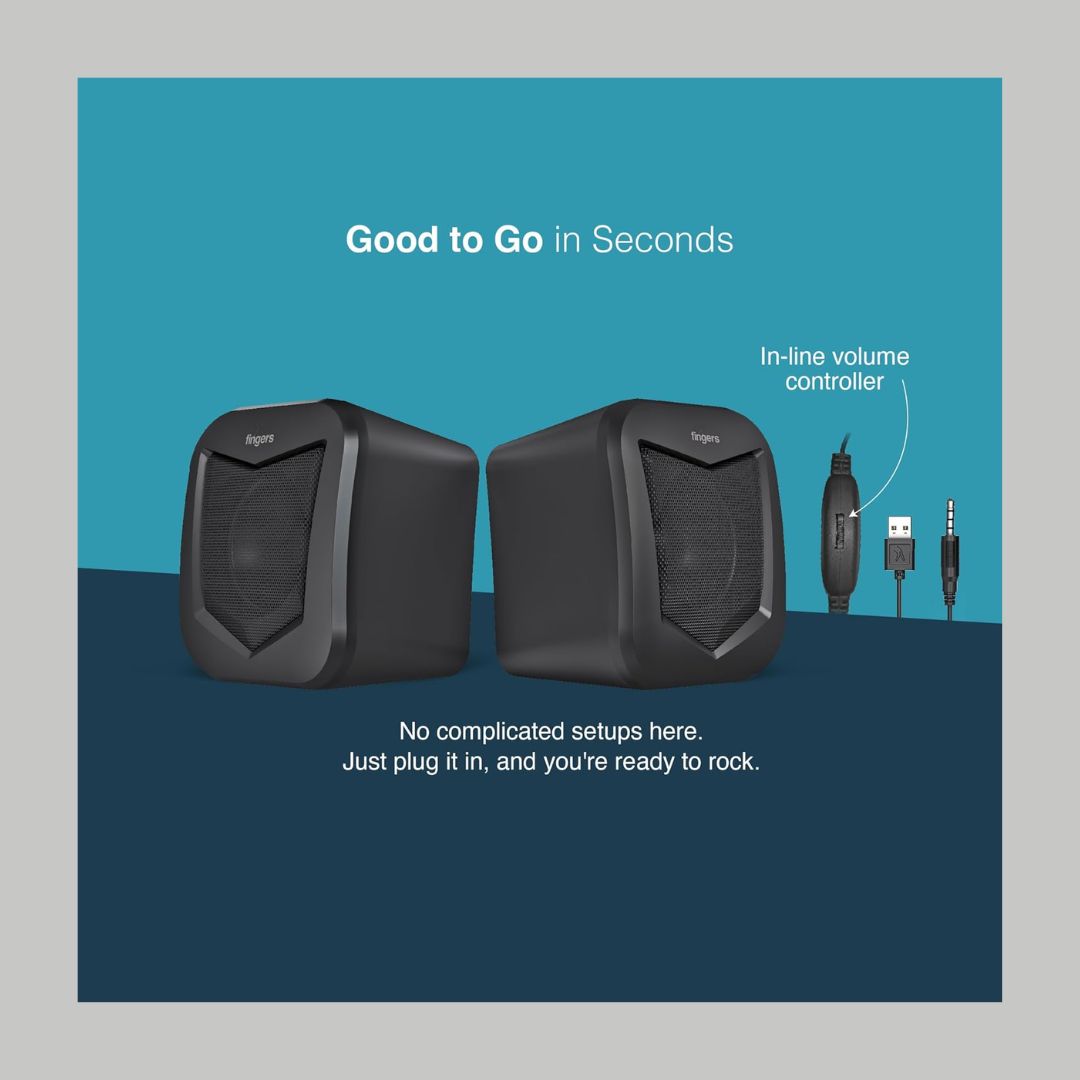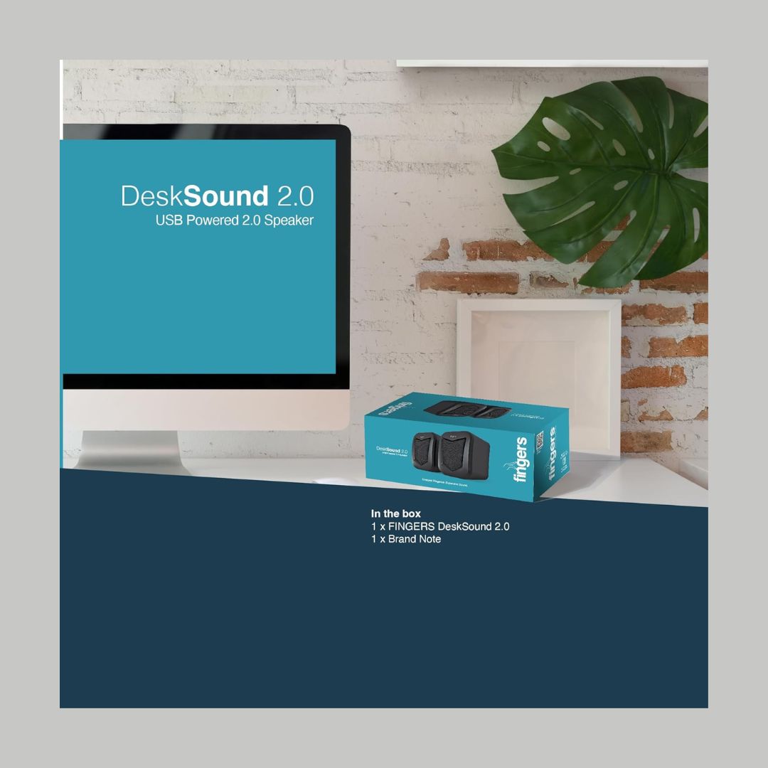 Elevate your desktop audio experience with the FINGERS DeskSound 2.0 USB Powered Speakers. Compact, stylish, and easy to use, these speakers deliver clear stereo sound perfect for music, movies, gaming, or webinars. Powered directly via USB, they eliminate the need for an external adapter and are ready to use with any PC or laptop. The inline volume controller provides convenient, immediate control, while the simple plug-and-play setup makes it hassle-free. Finished in Midnight Black, these speakers complement any workspace while offering reliable multimedia performance.