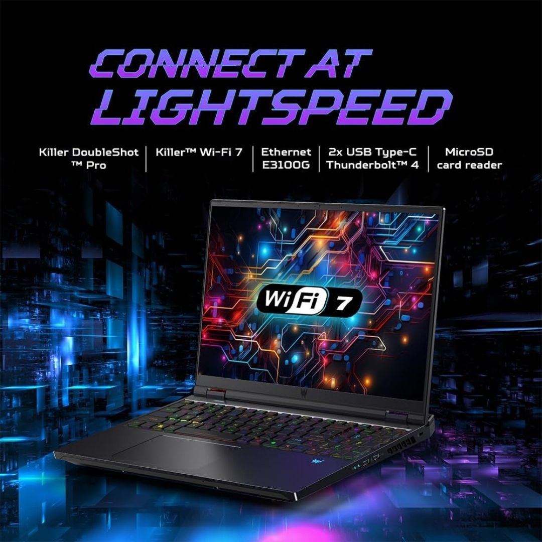 With AeroBlade™ 3D cooling, Wi-Fi 6E/7 connectivity, and a per-key RGB keyboard, the Predator Helios 16 is the ultimate balance of performance, style, and durability.