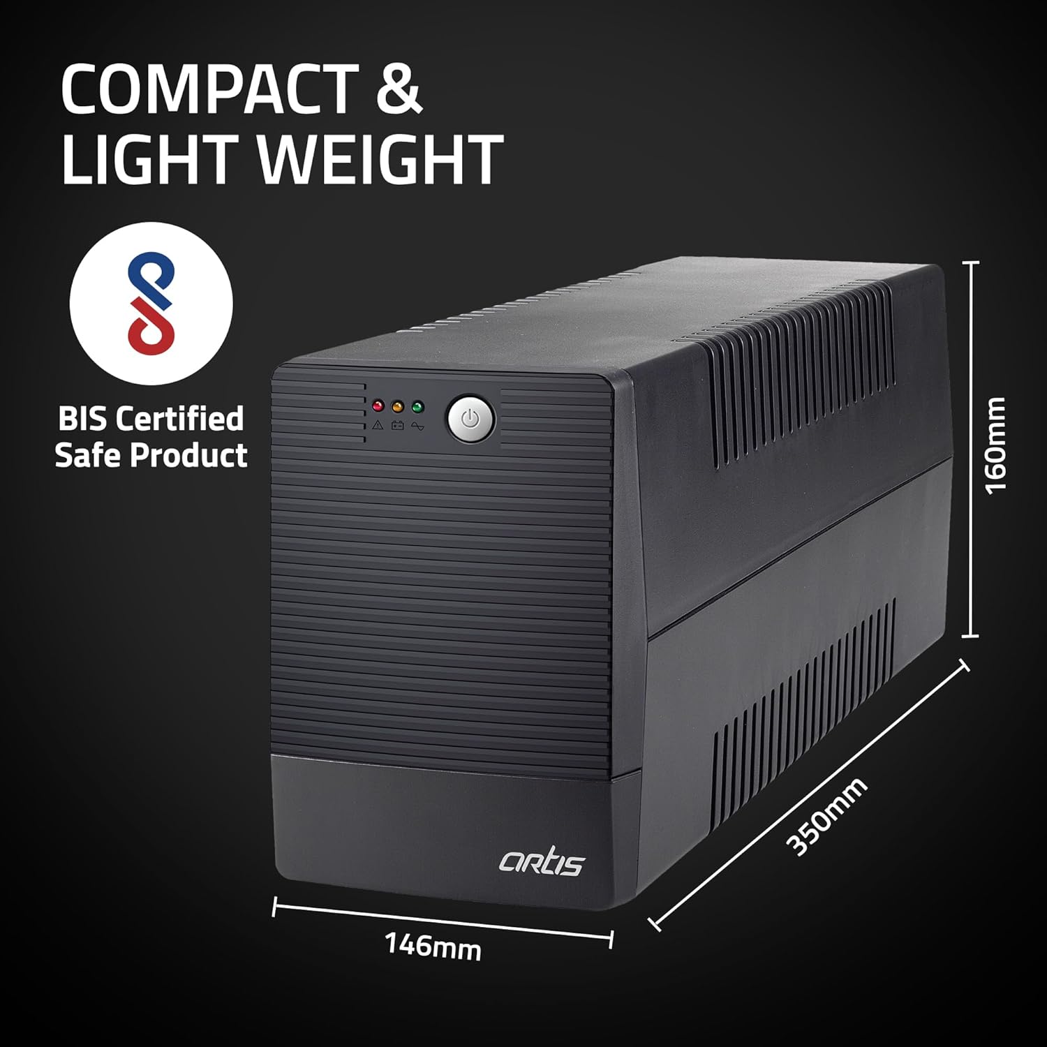 The Artis 2000VA Line Interactive UPS is a powerful and reliable power backup solution designed to protect your essential electronics and gaming systems. With its robust 2000VA / 1200W capacity, this UPS ensures your devices stay powered even during outages or voltage drops. Its Line Interactive design with AVR technology maintains steady voltage levels for optimal performance. The 16A heavy-duty plug supports high-load devices, making it perfect for gaming PCs, desktops, routers, and entertainment consoles. Compact yet powerful, the Artis 2000VA UPS combines safety, efficiency, and performance to keep your setup running without interruption.