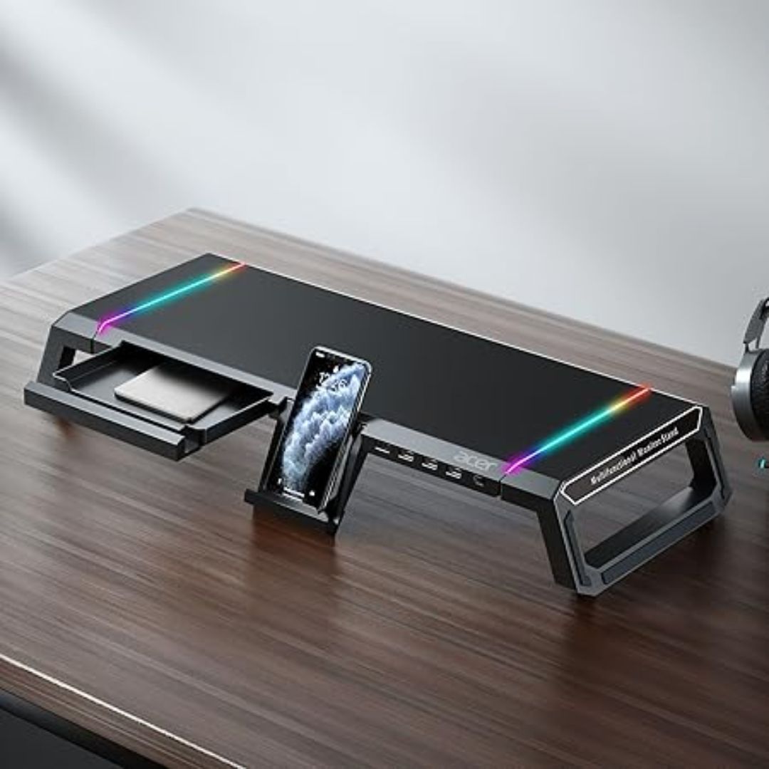 Upgrade your workstation with the Acer Ergo Multifunction Monitor & Laptop Stand (Black) – a versatile and stylish solution for productivity and comfort. Designed to enhance your posture and desk organization, this stand raises your monitor or laptop to eye level, reducing neck and back strain during long working or gaming sessions.