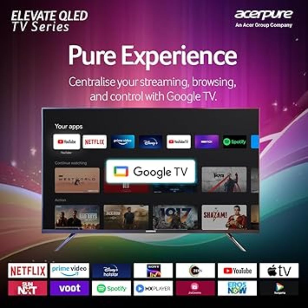 The acerpure Elevate 80 cm (32-inch) 2024 Series QLED Smart Google TV (AP32HG41QFLED) is designed to transform your home entertainment experience. Featuring a brilliant QLED 4K Ultra HD display, it delivers stunning visuals with enhanced brightness, rich colors, and superior contrast.