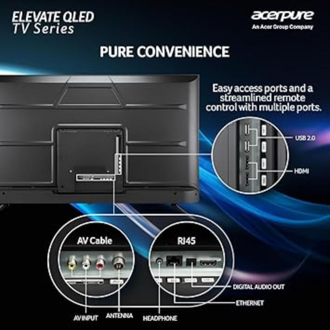 The acerpure Elevate Series 65-inch UHD 4K QLED Smart Google TV (AP65UG51QEVTD) delivers cinematic-quality visuals and immersive sound. With a QLED panel, Dolby Vision, and HDR10, colors are vibrant, and dark scenes are deeper and more detailed.
