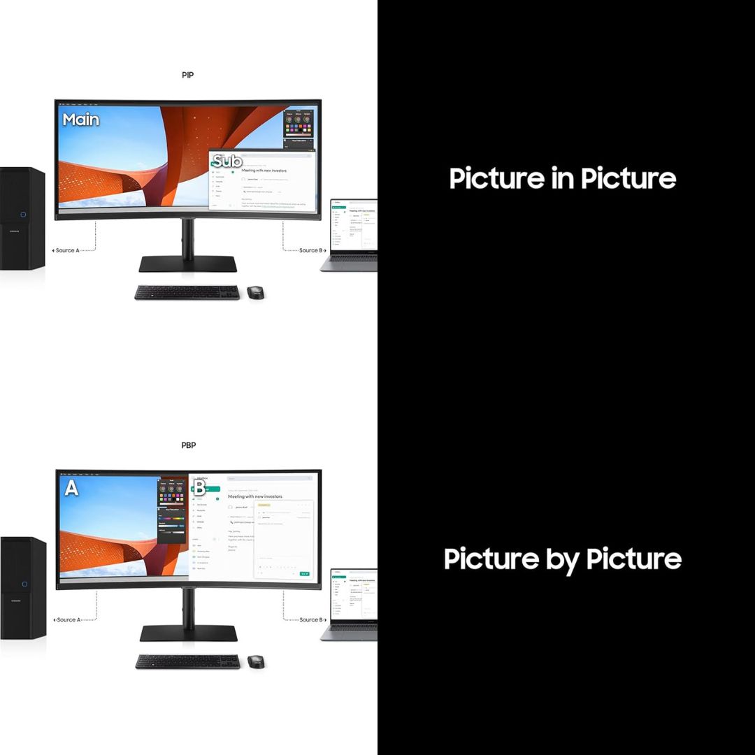 The Samsung ViewFinity S6, LS34C650VAWXXL 34-inch Curved Ultrawide Monitor is designed for professionals who need seamless connectivity, collaboration, and productivity. With a wide 3440 x 1440 WQHD resolution and immersive curved display, it provides ample screen space for multitasking and efficient workflows.