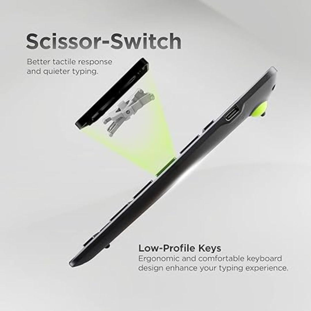 Equipped with quiet, low-profile keys, it ensures a comfortable and distraction-free typing experience. The USB-C rechargeable battery provides long-lasting use without the need for disposable batteries.