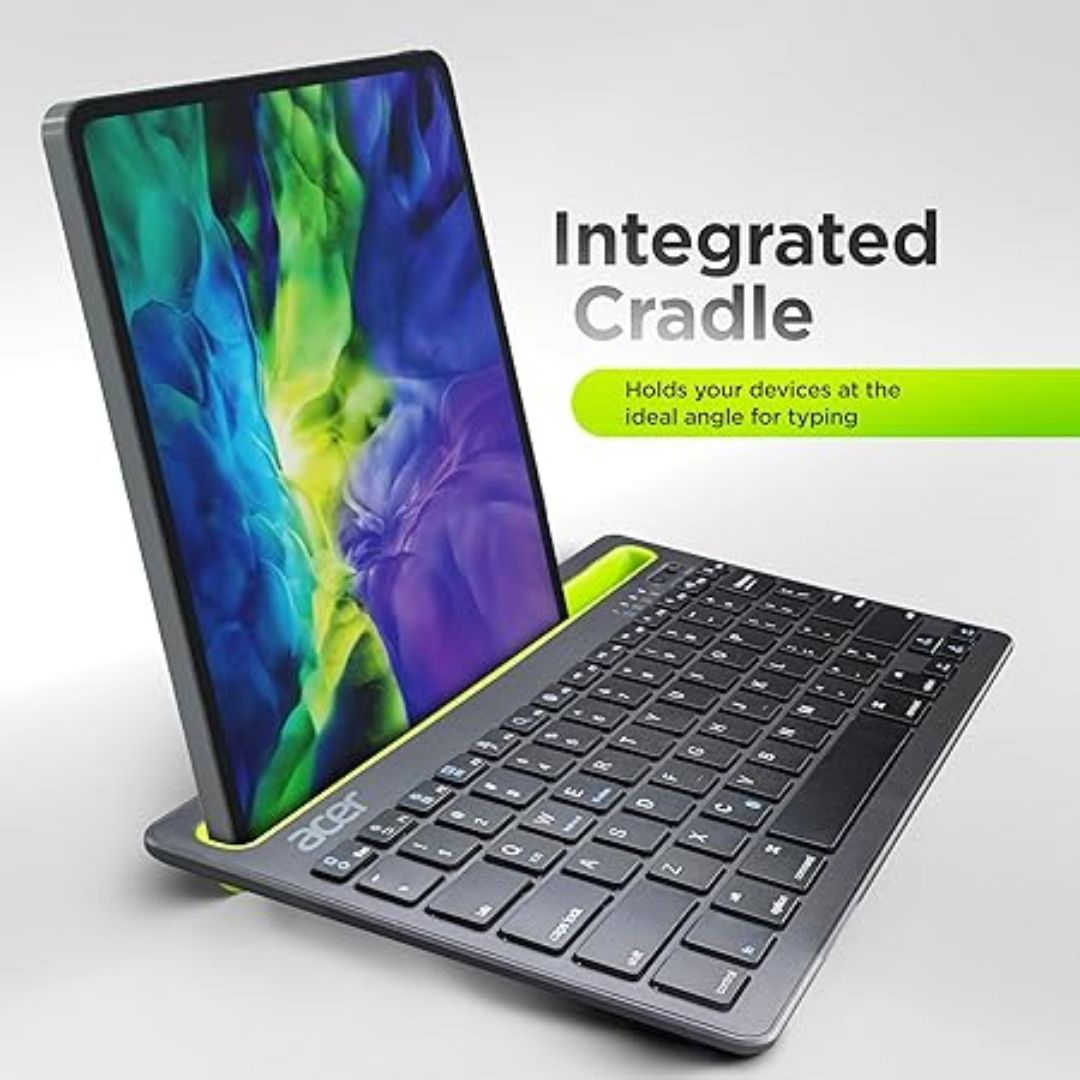 The Acer Swift Slim Multi-Device Wireless Rechargeable Keyboard is the ultimate productivity companion for modern professionals. Its dual channel wireless connectivity allows you to switch between devices instantly, making it perfect for those who work across laptops, tablets, and smartphones.
