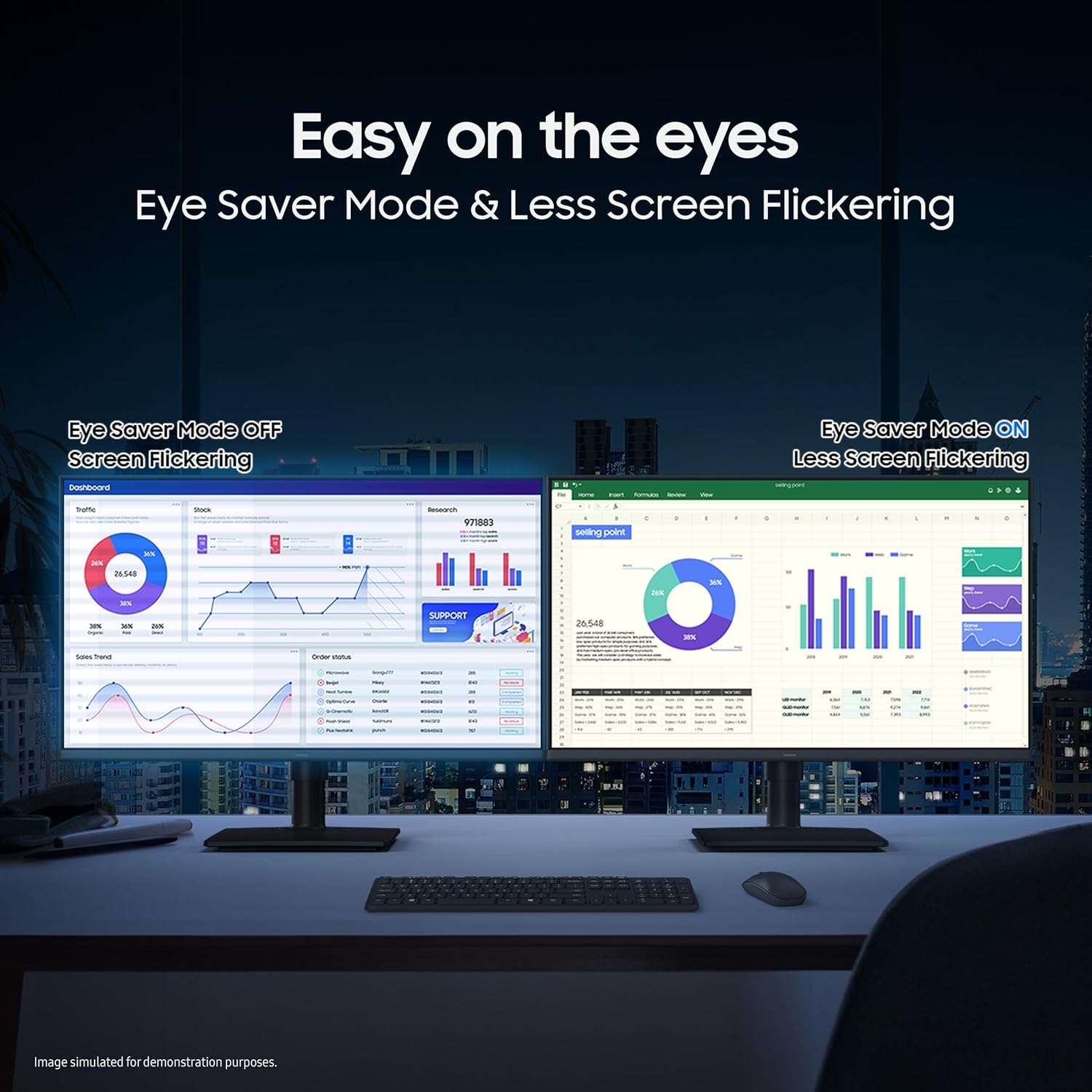 Eye Comfort: Features like Eye Saver Mode and Flicker-Free technology reduce eye strain during extended use.