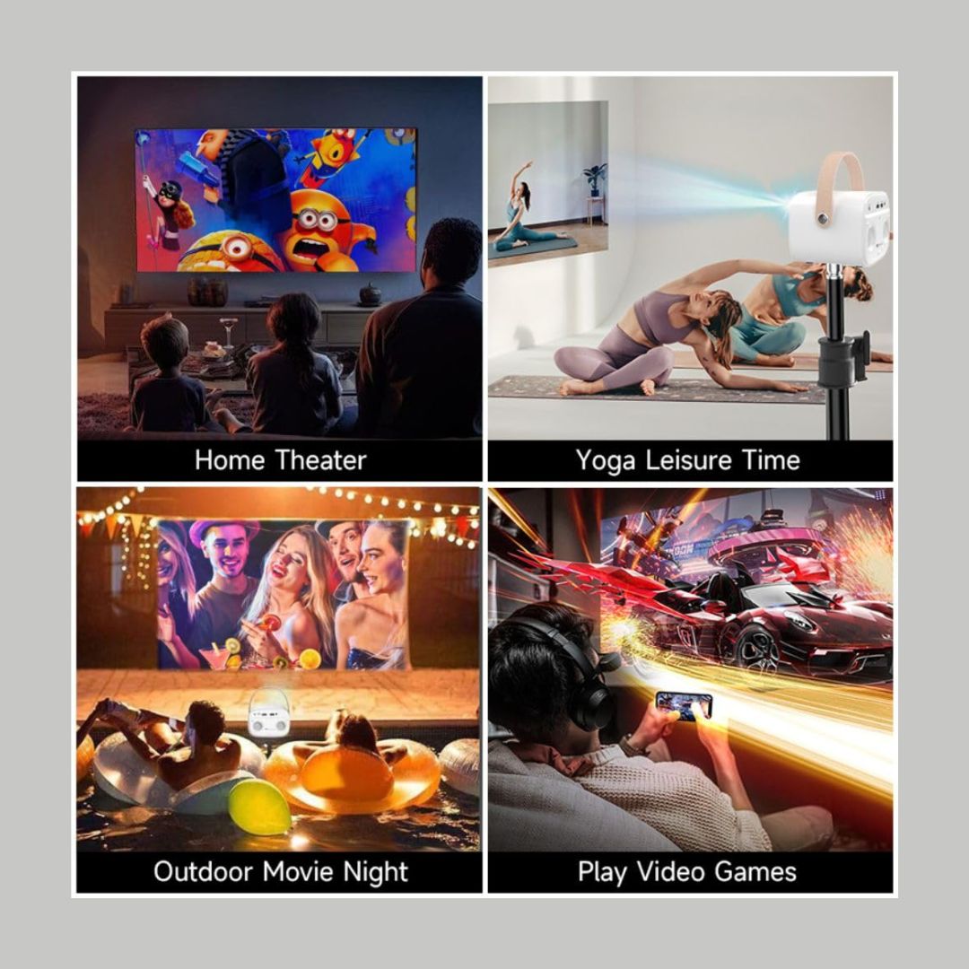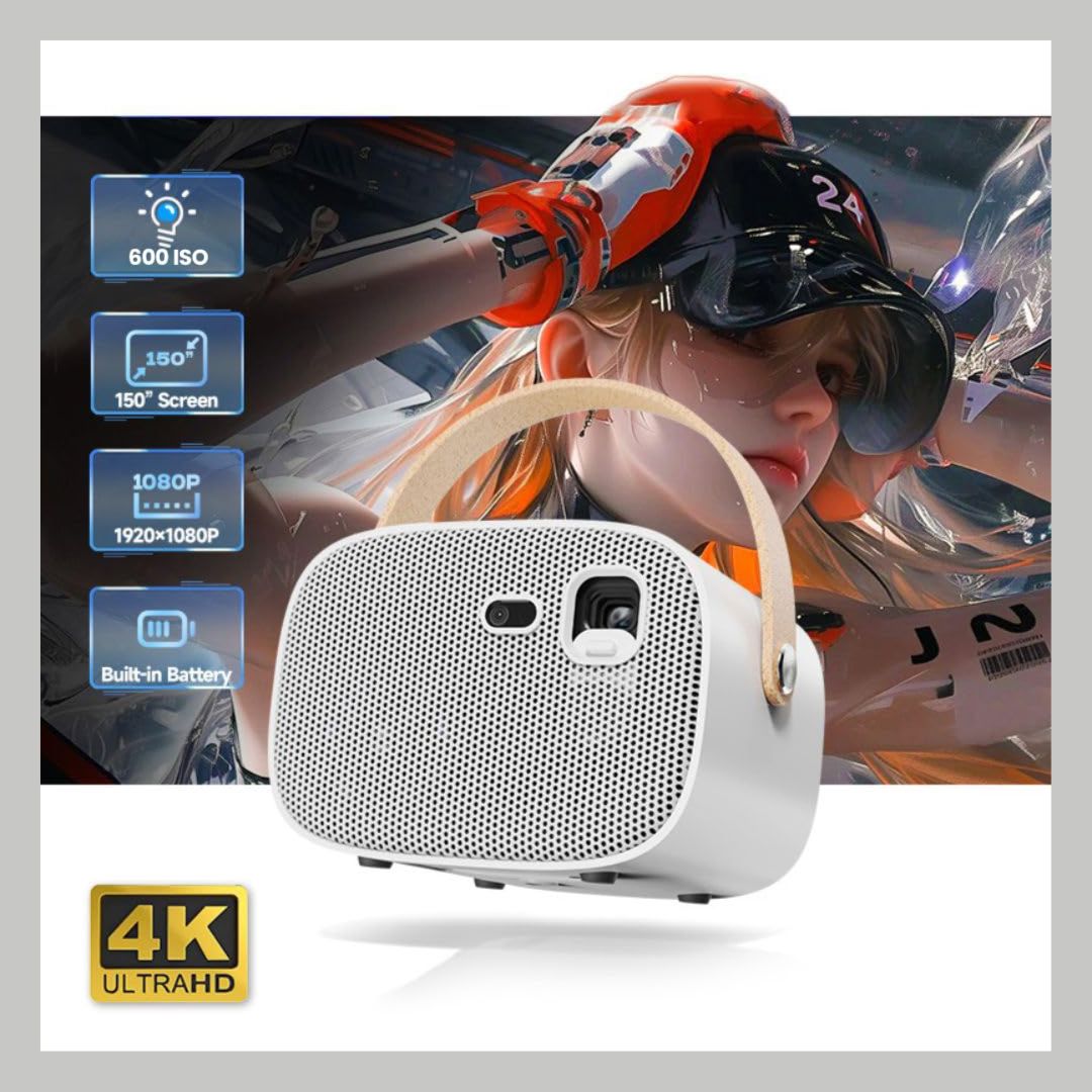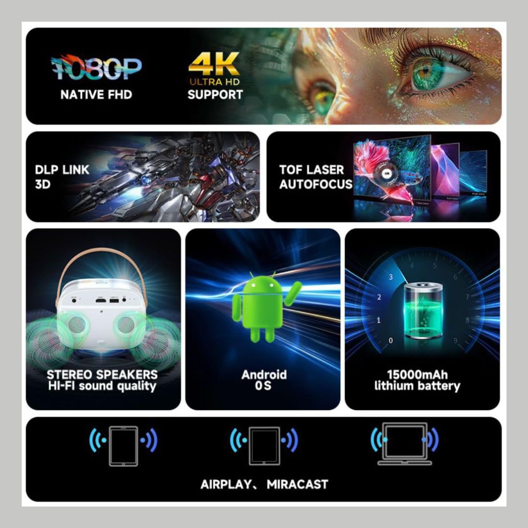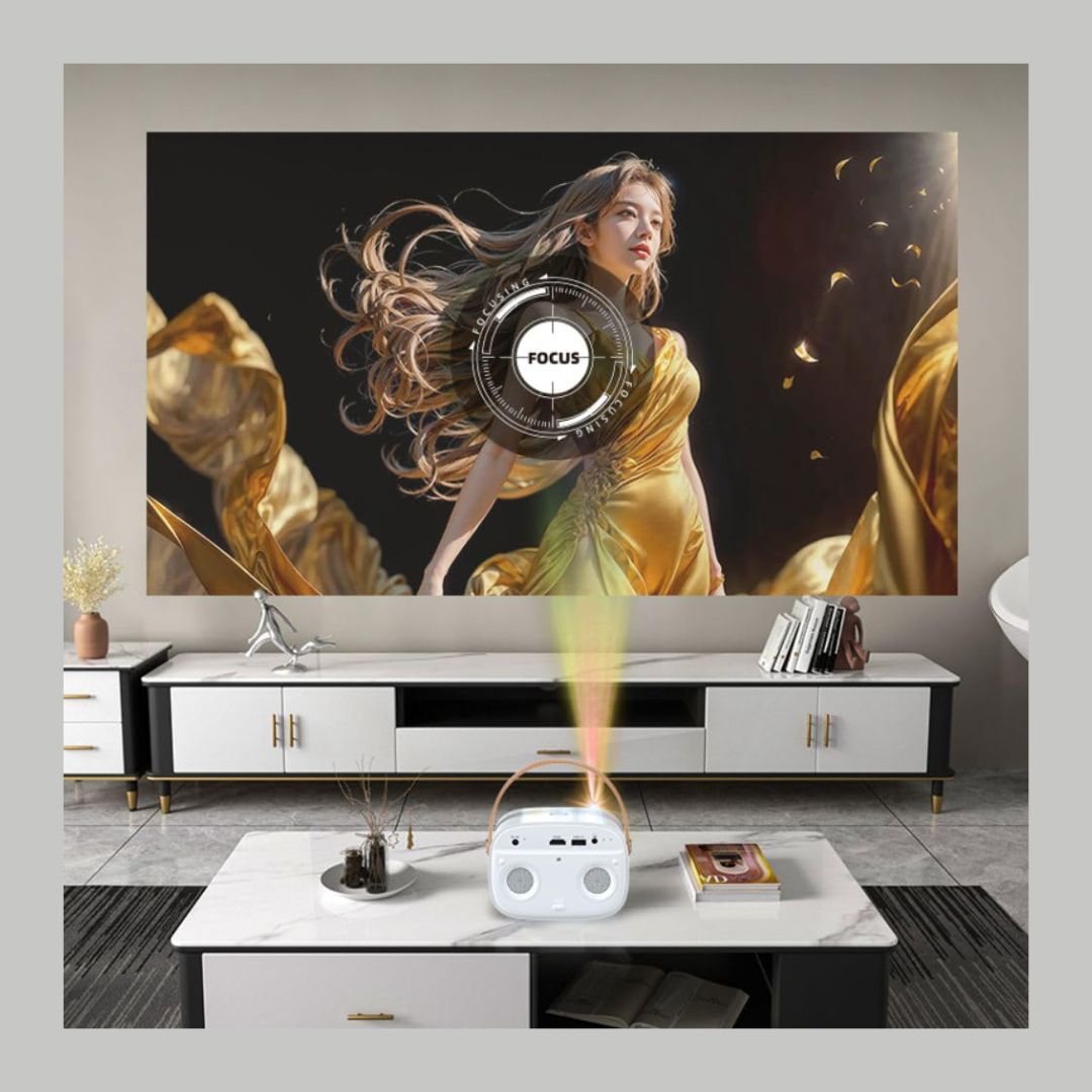 Equipped with a built-in rechargeable battery, this projector is perfect for outdoor movie nights, travel, and flexible home setups. The Android 9.0 operating system, paired with 2GB RAM and 32GB storage, allows direct app installation and smooth performance. Automatic focus and keystone correction make setup effortless wherever you place it.