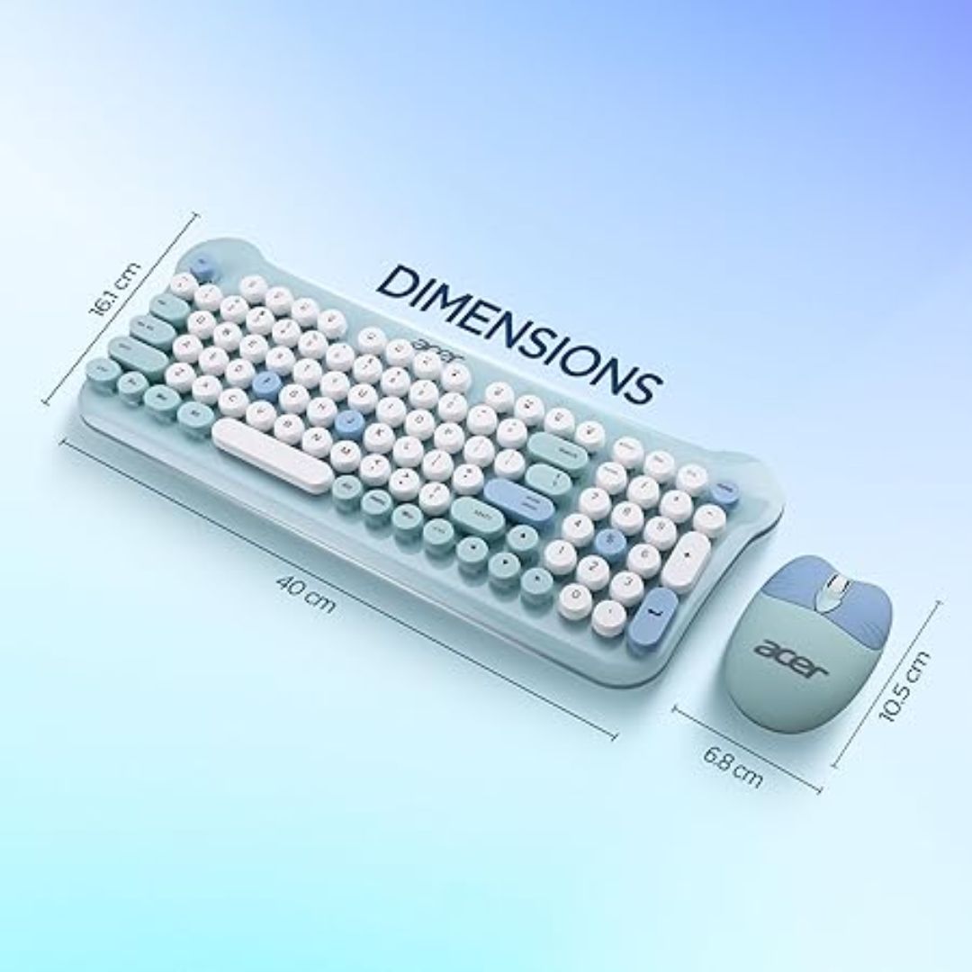 The Acer CUTEO 2.4GHz Wireless Keyboard & Mouse Combo combines retro style with modern wireless technology. Featuring round typewriter-style keys and a compact 98-key layout, it offers a comfortable and stylish typing experience.