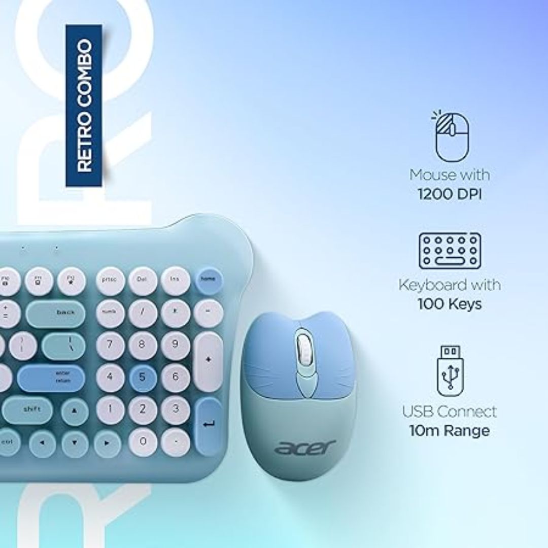 With integrated multimedia shortcut keys, quiet operation, and a battery-powered design, this combo is ideal for home, office, or creative setups. Add a touch of retro flair to your desk while enjoying the reliability and performance of Acer.