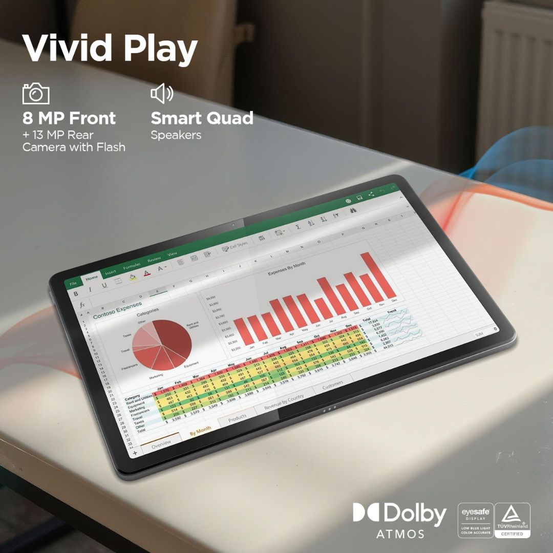 Stay connected anywhere with 4G calling + WiFi, making it a perfect choice for users on the move. The tablet includes 128GB of internal storage, expandable up to 1TB—ideal for storing large files and media. Capture clear photos and enjoy smooth video calls using the 13MP rear and 8MP front cameras.