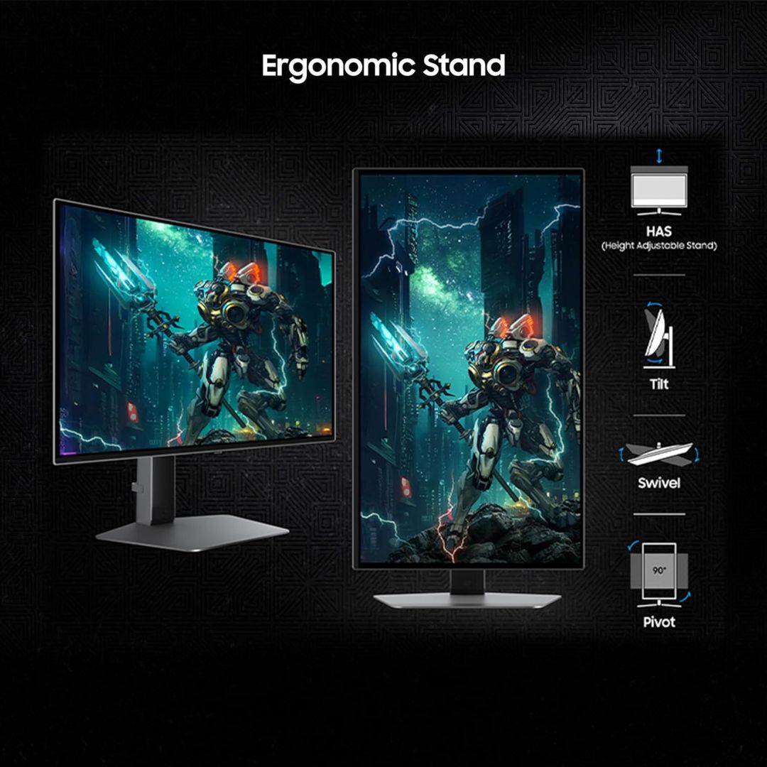 Packed with FreeSync Premium Pro, G-Sync compatibility, Picture-in-Picture, and Samsung’s Super Arena Gaming UX, this monitor is engineered for pro-level gameplay. The height, tilt, swivel, and pivot adjustable stand ensures ergonomic comfort, while the sleek silver design blends seamlessly into modern setups.