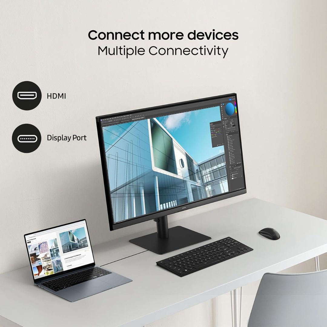 The Samsung 27-inch, LS27F610EAWXXL, IPS QHD Monitor is designed for productivity, comfort, and visual clarity. Featuring a QHD 2560 × 1440 resolution, it provides sharp detail and more screen space for multitasking, work, and entertainment.